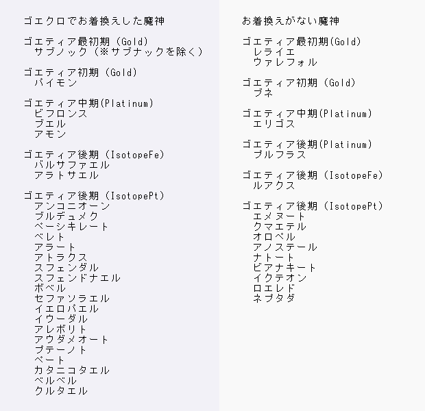 ゴエティアって3000円課金で魔神をプレゼントをやってた時に低レアの子をお着換えさせてくれてたから、ゴエクロの方にきてないだけで衣装があったりする